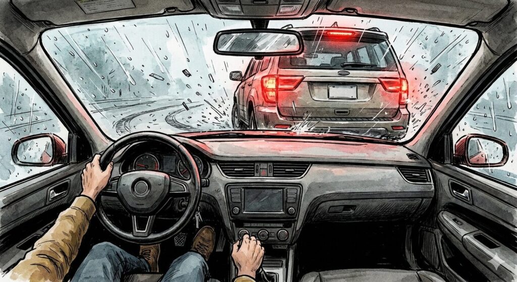 前を走る車に衝突しそうになった